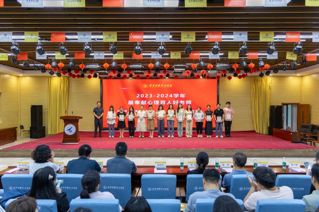 高超为2023-2024学年心理危机预防干预体系建设优秀单位颁发奖牌。张瑜为第九届心理育人宣传季优秀组织单位颁发奖牌。任华为2023-2024学年最奉献心理育人好老师颁发荣誉证书。雷娟为在2024年度最美心理委员评选活动中获奖的学生颁发荣誉证书。赵旭东为在学校2024年度心理健康教育指导典型案例评选比赛中获奖的老师颁发荣誉证书。何文举为在学校2024年度“心相遇 爱同行——心理健康教育伴我成长”主题征文比赛中获奖的学生颁发荣誉证书。王庭良为获得内训班“优秀学员”称号的老师颁发结业证书。郑林科教授为获得内训班“优秀教员”称号的老师颁发荣誉证书。