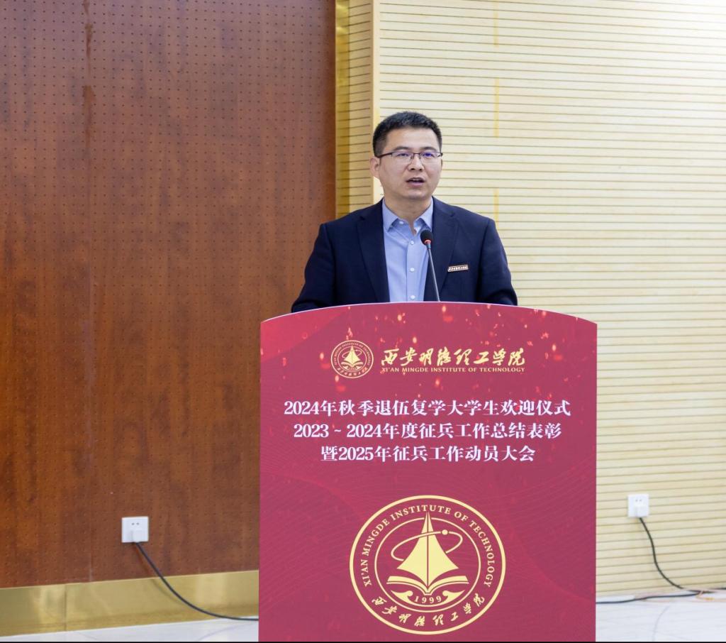 刘星代表学校,向我校26名光荣履行完兵役任务,圆满完成军人使命返回校园的同学们表示热烈欢迎!他指出,退役大学生们因为生命中有了当兵的历史而显得无上光荣,学校、老师和广大在校学生因为退役同学们的出色表现而感到无比自豪。他勉励退役大学生,要尽快转换角色,主动适应校园环境;做好未来规划,继续努力前行;永葆军人本色,发挥标兵作用。同时,刘星对学校2025年度征兵工作进行动员部署并提出要求:一是希望退伍学生退伍不褪色,继续保持军人的优良品质和作风,在学习和生活中发挥模范带头作用。二是希望广大在校学生以退伍学生为榜样,积极响应国家号召,踊跃报名参军,到部队中去锻炼自己、磨砺自己,在实现强军梦的伟大实践中放飞青春梦想,在为人民利益的不懈奋斗中书写人生华章。三是希望各学院、各部门进一步提高政治站位,从落实立德树人根本任务、推动大学生高质量就业的高度深刻认识征兵工作的重大意义,把大学生征兵工作真正融入立德树人大格局。