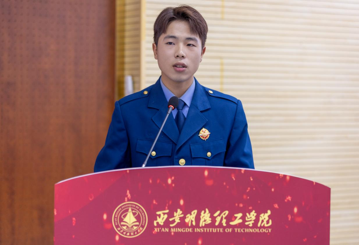 会上,为38名在我校2024级学生军训中担任学生教官的退伍大学生士兵颁发了2024级学生军训大学生教官聘书。学生军训教官代表李建成分享了退役复学后同退役战友们积极协助校武装部开展征兵宣讲、国防教育及参与新生军训等学习实践经历。