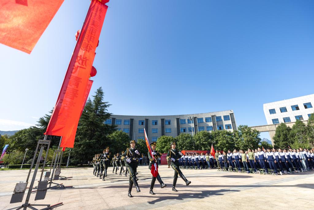 大会在庄严的升国旗、奏唱国歌仪式中拉开帷幕,全体师生肃立注目,激昂的旋律响彻校园。