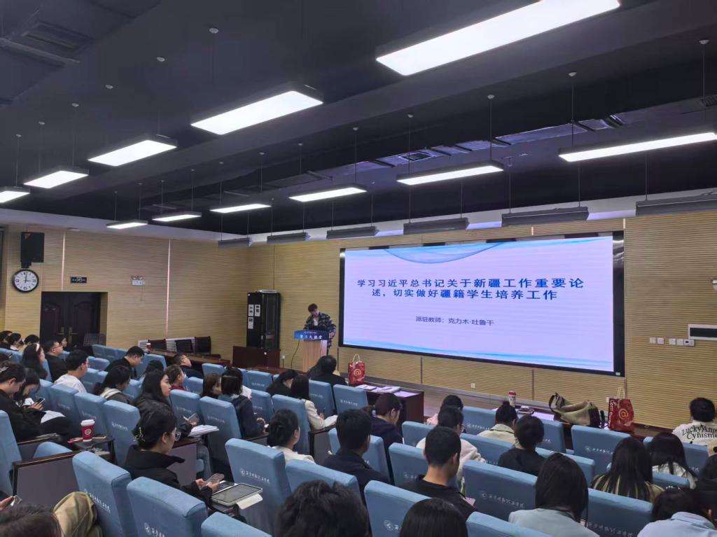 培训会上,克力木首先作了题为“学习习近平总书记关于新疆工作重要论述,切实做好学生培养工作”的专题辅导报告。他紧密结合当前形势与学校学生工作实际,系统梳理并深入阐释了习近平总书记围绕新疆工作提出的一系列具有深远意义的新理念、新思想、新战略。克力木强调,全体辅导员要深刻领会、准确把握其核心要义和精神实质,自觉将总书记的重要论述精神贯彻落实到日常学生思想政治教育与管理服务的全过程、各方面。要立足立德树人根本任务,不断增强做好新时代学生工作的政治责任感和历史使命感,尤其要关注学生的思想动态和成长需求,将铸牢中华民族共同体意识教育融入育人实践,用心用情用力做好学生培养工作,努力培养担当民族复兴大任的时代新人。
