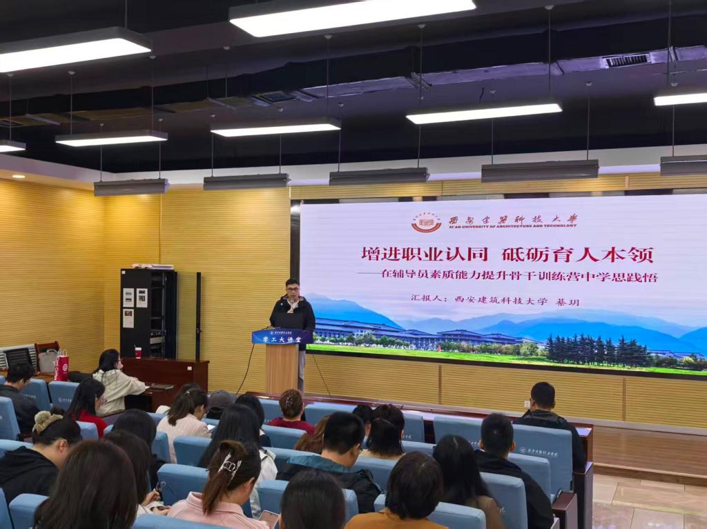 为切实加强我校辅导员队伍建设,不断提升辅导员的理论水平、职业能力和专业素养,10月14日,学校第四十期“学工大讲堂”——辅导员素质能力提升专题培训在建德楼202报告厅顺利举行。本次培训特邀2024年全国高校辅导员素质能力提升骨干训练营“十佳标兵”,西安建筑科技大学辅导员綦玥作题为《增进职业认同砥砺育人本领——在辅导员素质能力提升骨干训练营中学思践悟》的专题分享。学校全体辅导员参加了本次培训。