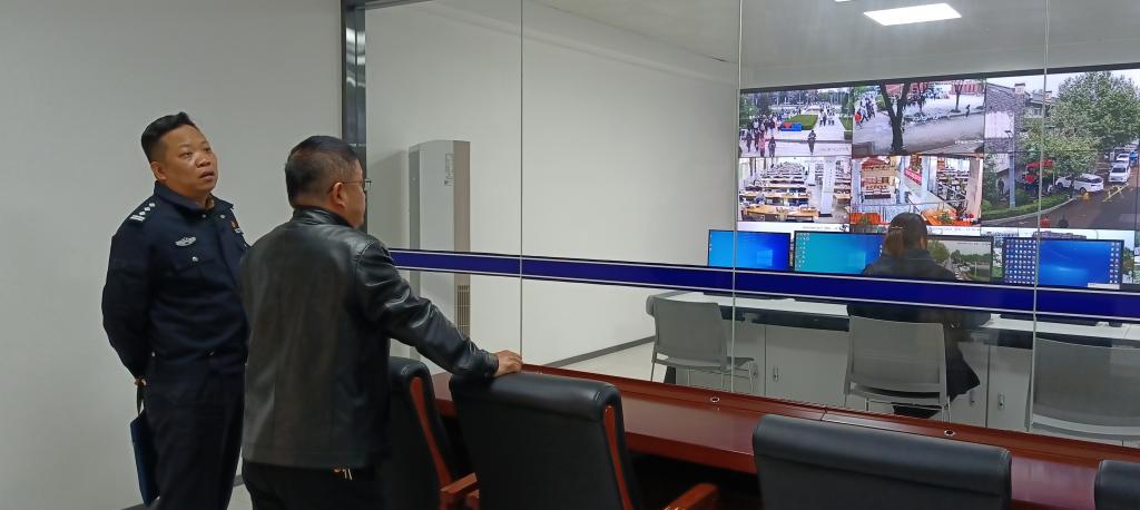 会后,岳灏中队长和张育红警官在王斌宁副校长陪同下参观了我校智慧安全指挥中心。陪同参加座谈的还有后勤产业集团副总经理袁小勇、智慧安全警务处处长宋敏纲。
