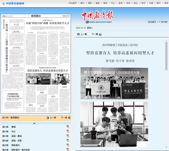 12月31日,《中国教育报》以《坚持竞赛育人 培养高素质应用型人才》为题,深入报道了我校信息工程学院竞赛育人工作的经验和成效。现将原文转载如下: